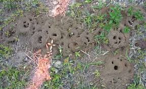 Eventually the activity of ants will get more noticeable and very soon you will see a mound with a hole that ants are diving in and out of. Look all around this area as there will more than likely be a few ant hills here and all close by. Most ant holes will be smaller than a five cent piece and likely have four or five holes close by. The mound around the hole is quite distinctive and if you jump up and down a bit the ant activity multiples very quickly.